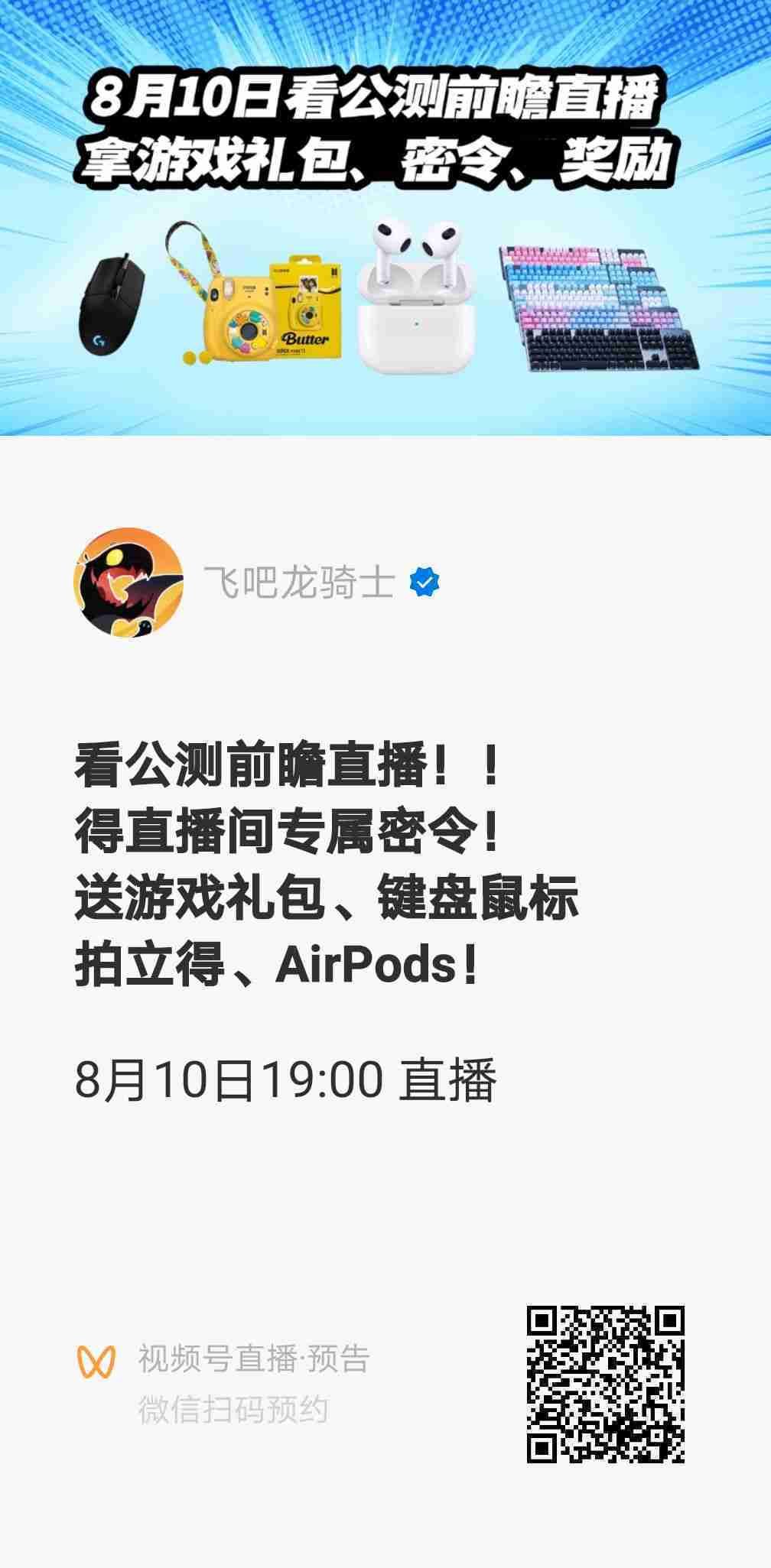 更多内容,,玩家可以于8月10日晚19::::00前往官方微信视频号、、官方TapTap号两大平台观看公测前瞻直播,,,,超多游戏内容介绍、、、公测活动提前曝光,,还有超值礼包专场为冲榜福利层层加码!!